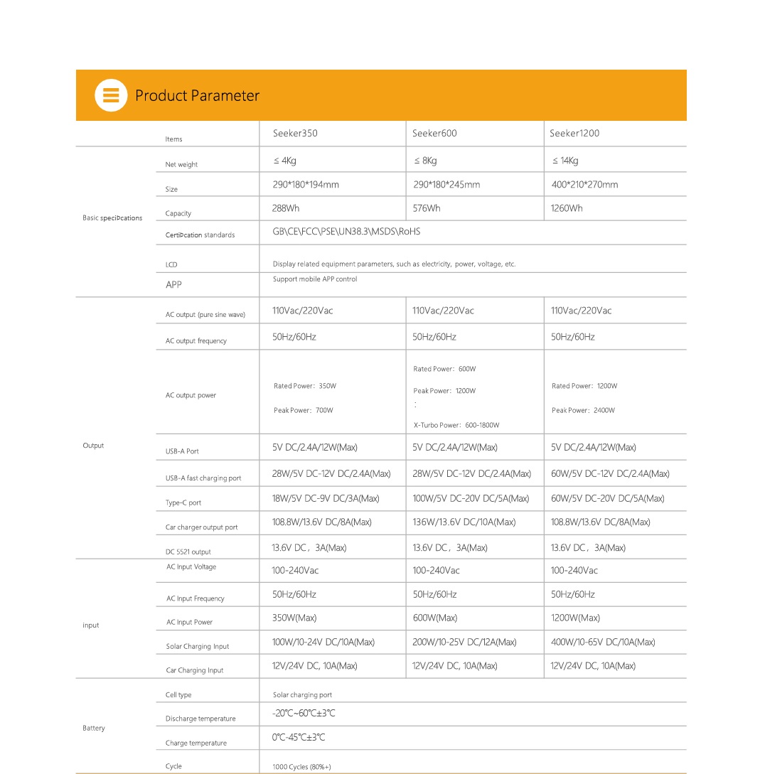 Seeker 350W/600W/1200W Portable Energy Storage Supply